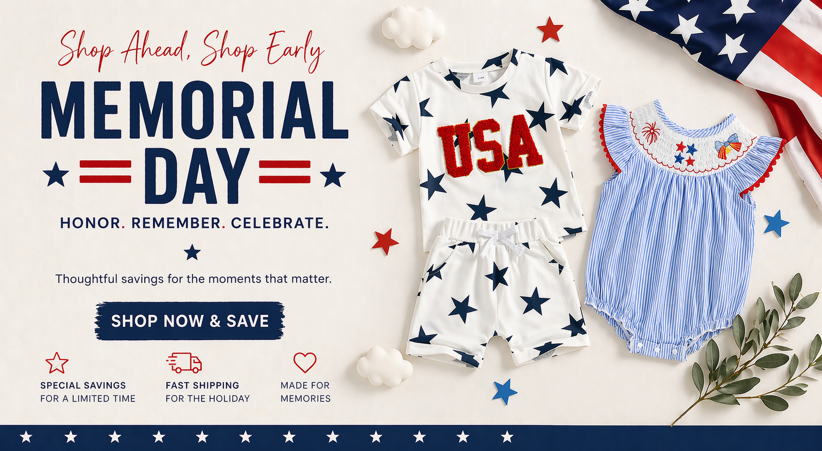 Dressed for the long weekend. Our Stars & Stripes Smocked Romper is soft, sweet, and made for making memories. Limited sizes. Shop before it's gone.