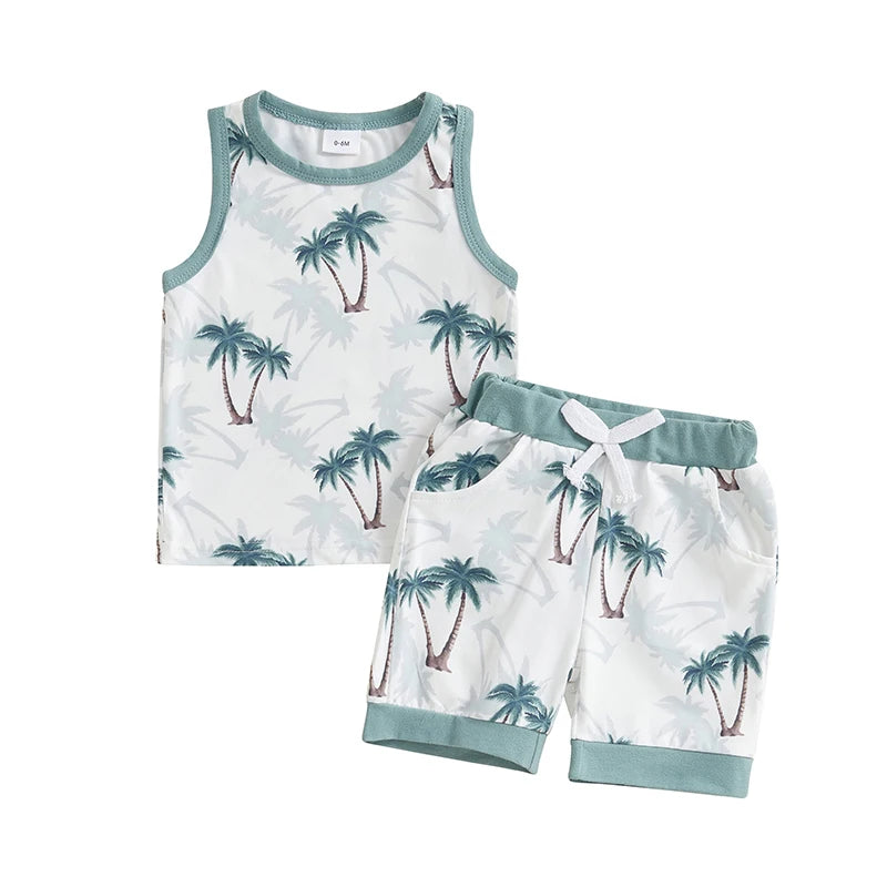Blooming Flower Pleated Tank Top and Ruffle Shorts Set