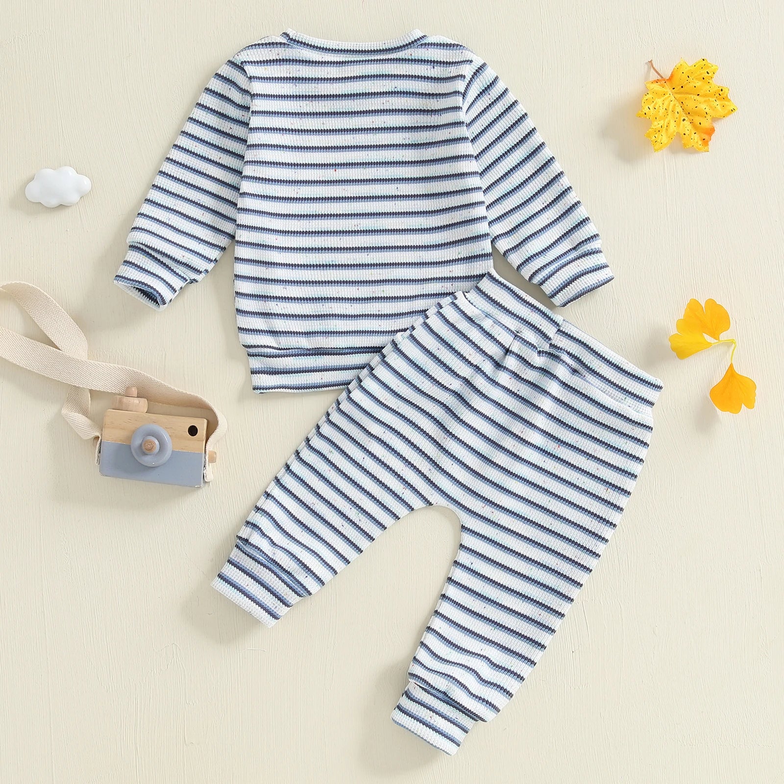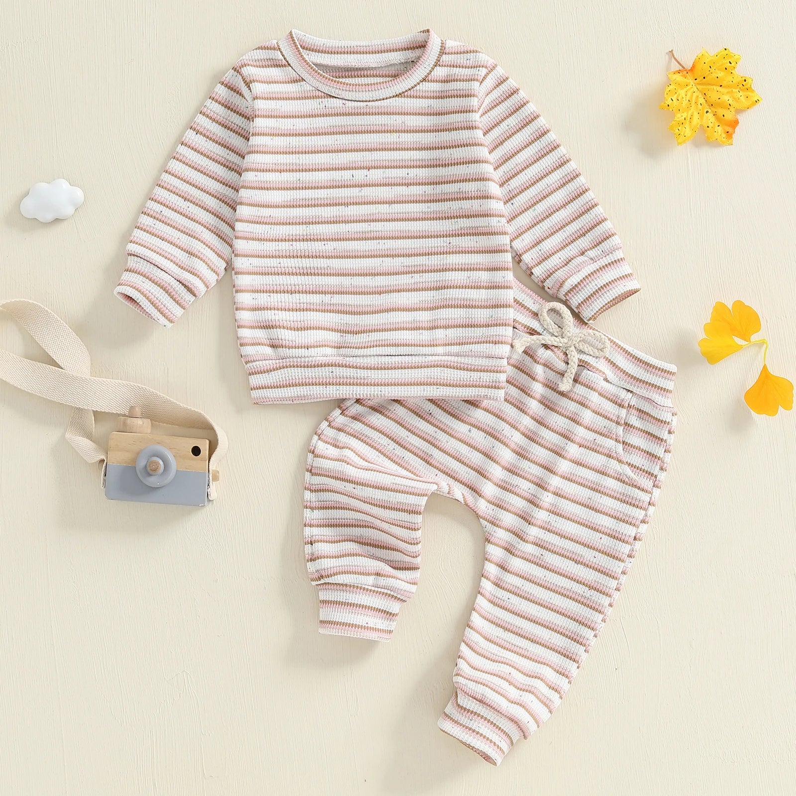 Designed for everyday comfort and easy layering, the Soft Stripe Lounge Set is a cozy two-piece outfit made for play, rest, and everything in between. Crafted from a soft, textured knit fabric, this set includes a long-sleeve pullover top and matching jogger pants with a gentle elastic waistband and functional drawstring. Lightweight yet warm, it’s perfect for lounging at home, casual outings, or layering during cooler days.