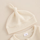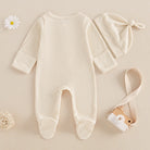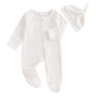 Thoughtful details like a smooth, full-length zipper for quick changes and built-in footies for warmth make late nights and early mornings easier. Finished with a matching knotted hat, it’s the perfect blend of practicality and understated luxury for baby’s first days.