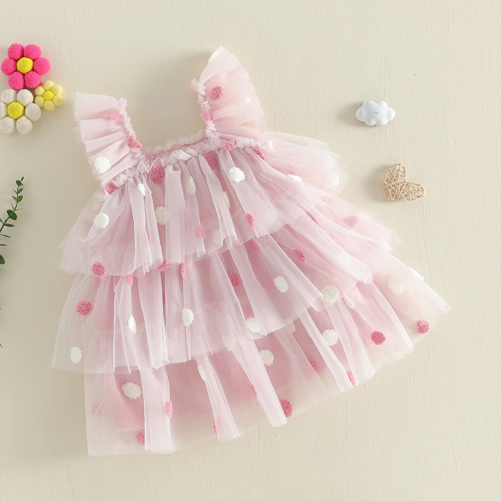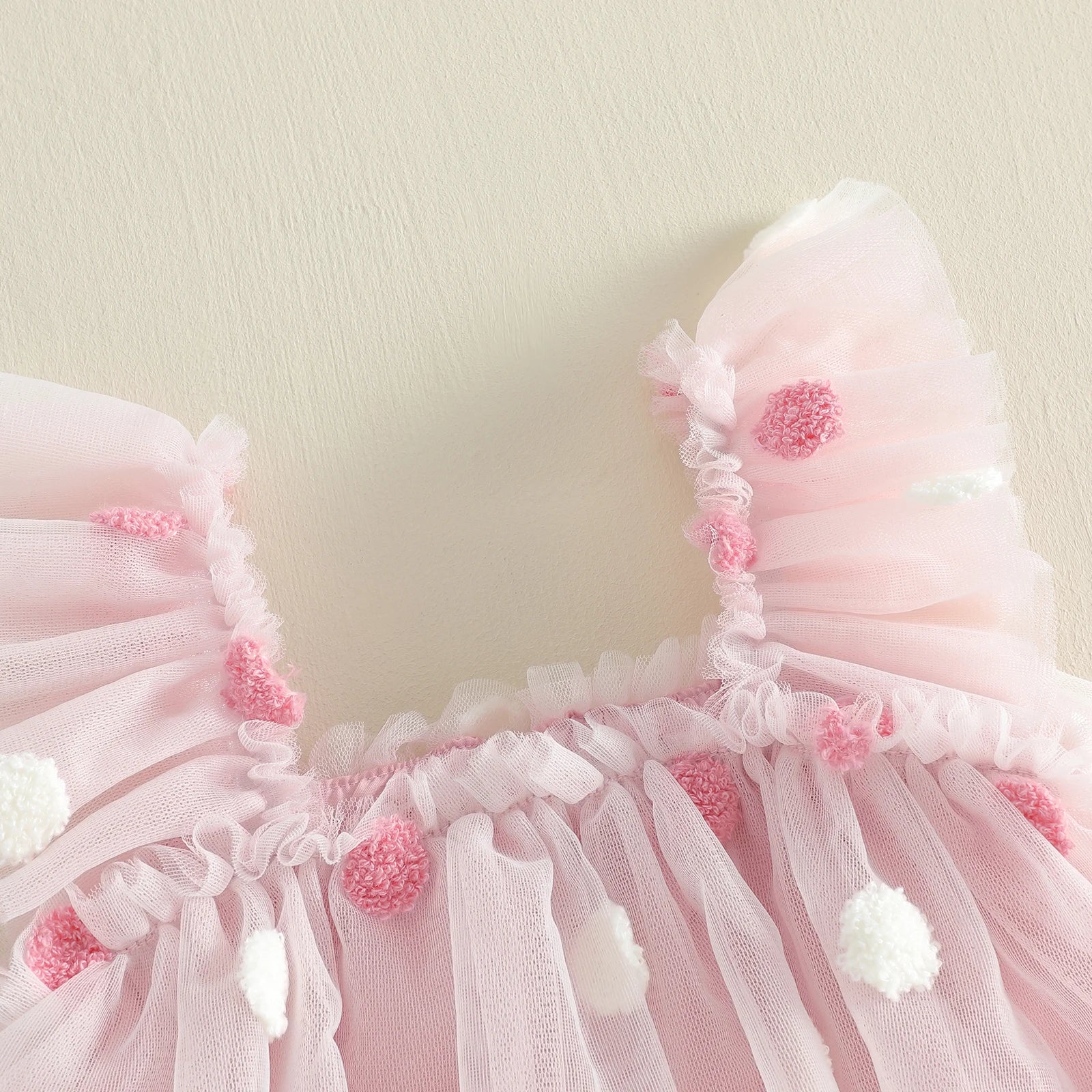 Sweet, whimsical, and absolutely enchanting. The Blush Pom Pom Tulle Party Dress is made for twirls, celebrations, and picture-perfect moments. This beautiful boutique dress features layers of soft blush tulle adorned with delicate textured pom pom details, creating a playful yet elegant look. The flutter straps and tiered skirt add volume and movement, making it the perfect dress for birthdays, holidays, and special occasions.