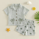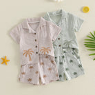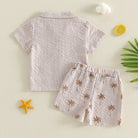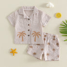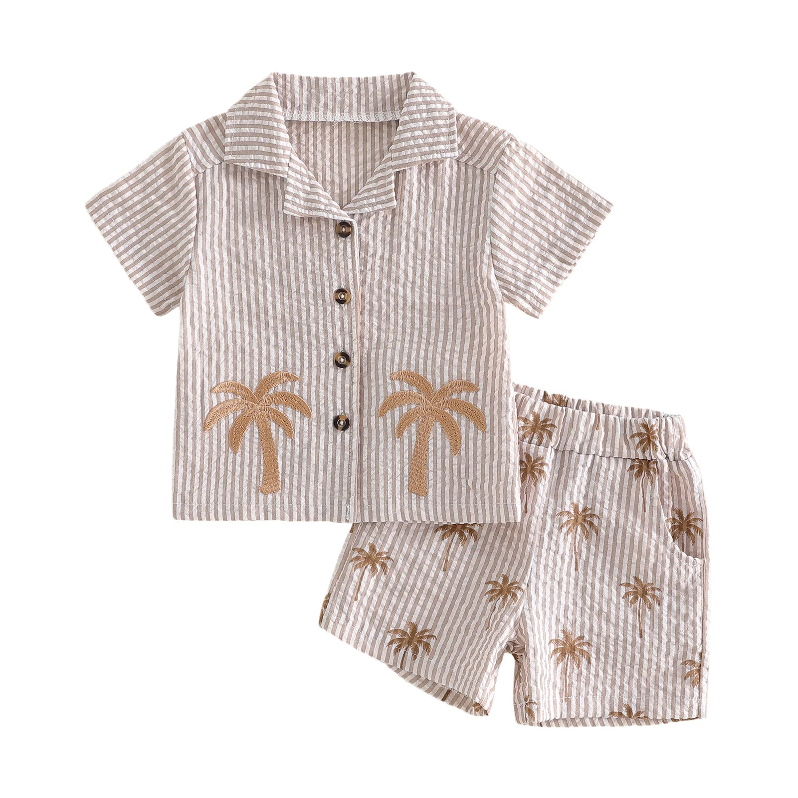 Easy, breezy, and made for sunny adventures. Our Little Palm Seersucker Set is the perfect warm-weather outfit featuring a classic striped button-down shirt paired with comfortable matching shorts. The charming embroidered palm trees add a playful tropical touch while keeping the timeless boutique style parents love. Made from lightweight breathable cotton seersucker, this outfit keeps little ones cool and comfortable during warm days, vacations, playdates, and family outings. The relaxed fit and elastic waistband allow easy movement so your little one can explore, play, and stay comfortable all day long. A timeless summer set!