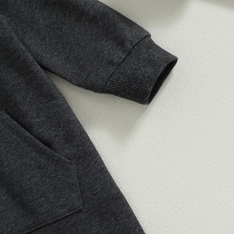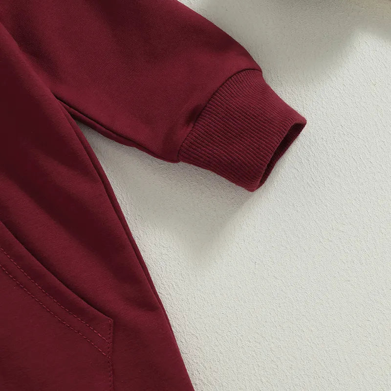 This cozy, and snuggly hooded jumpsuit will keep your little one warm, and comfortable all day long. The jumpsuit features a convenient front zipper. The soft, and stretchy fabric will move with your baby, making it perfect for all-day play.