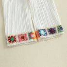 Delicate, dreamy, and full of charm — the Boho Bloom Set is made for the free-spirited little one. This two-piece outfit features a breezy crinkled cotton top with flutter sleeves and colorful crochet detailing, paired with matching pants adorned with coordinating hem accents. Whether it's a garden party, a photo op, or a day of play, this set offers comfort without compromising style.