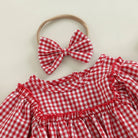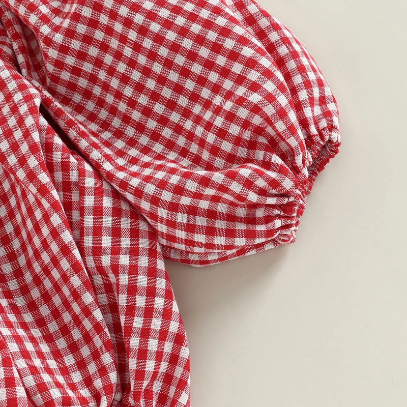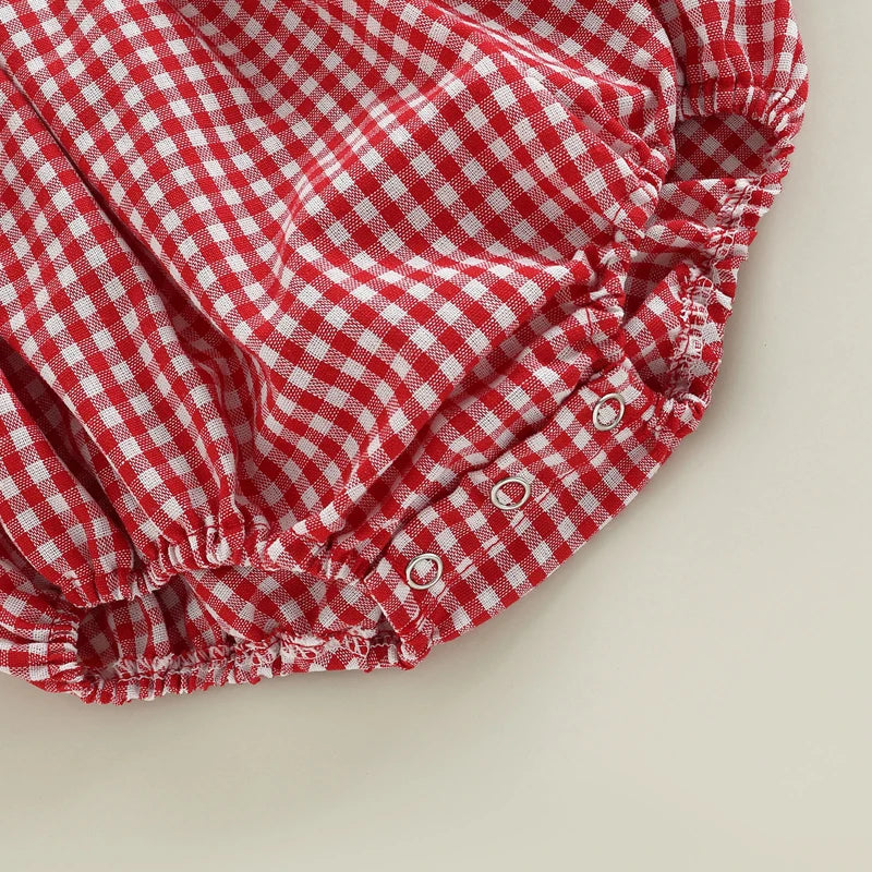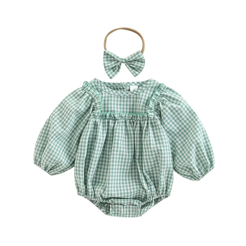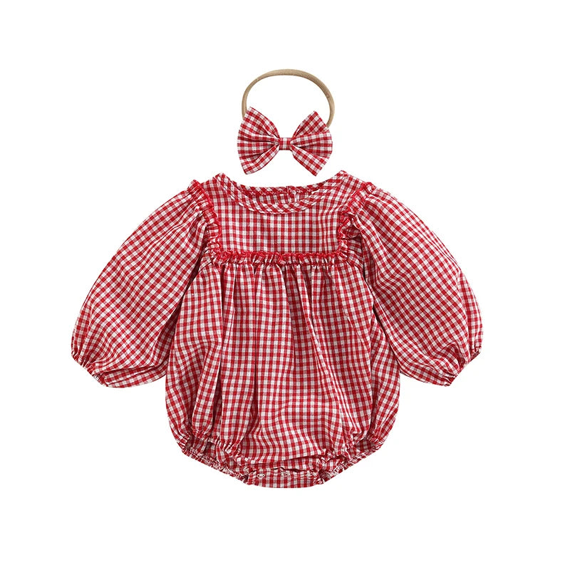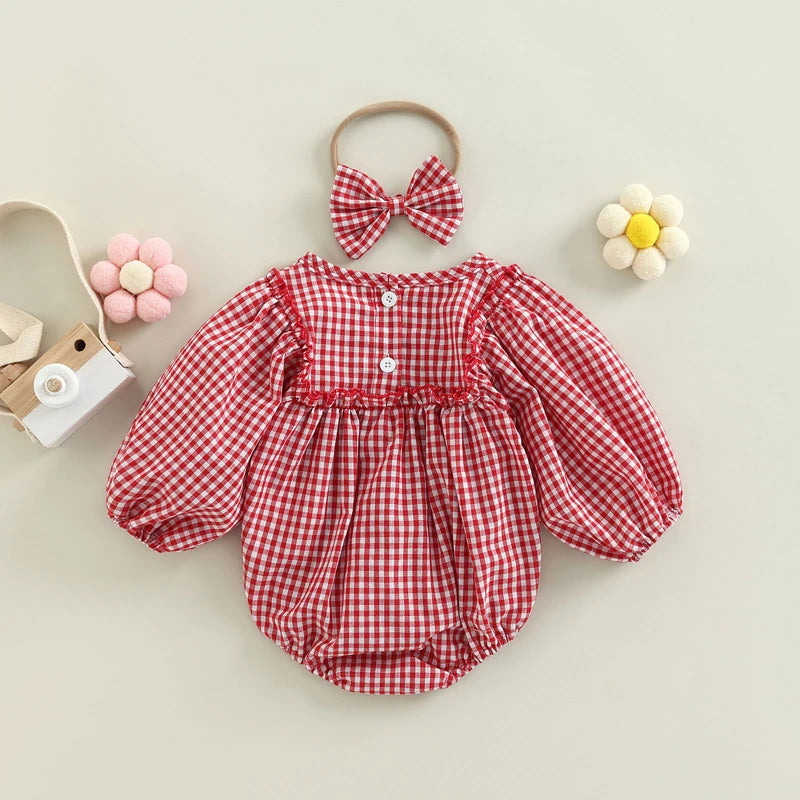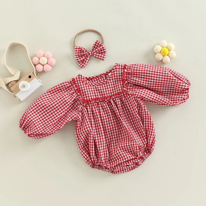 Sweet, classic, and made for memories! Our Vintage Picnic Romper Set brings timeless charm to your little one’s wardrobe. The airy silhouette allows room to move, crawl, and play, while snap-button closures make diaper changes quick and easy. Finished with a matching stretchy bow headband, this set is perfect for holidays, photoshoots, birthdays, and cozy family moments. Includes: Romper + Matching Bow Headband