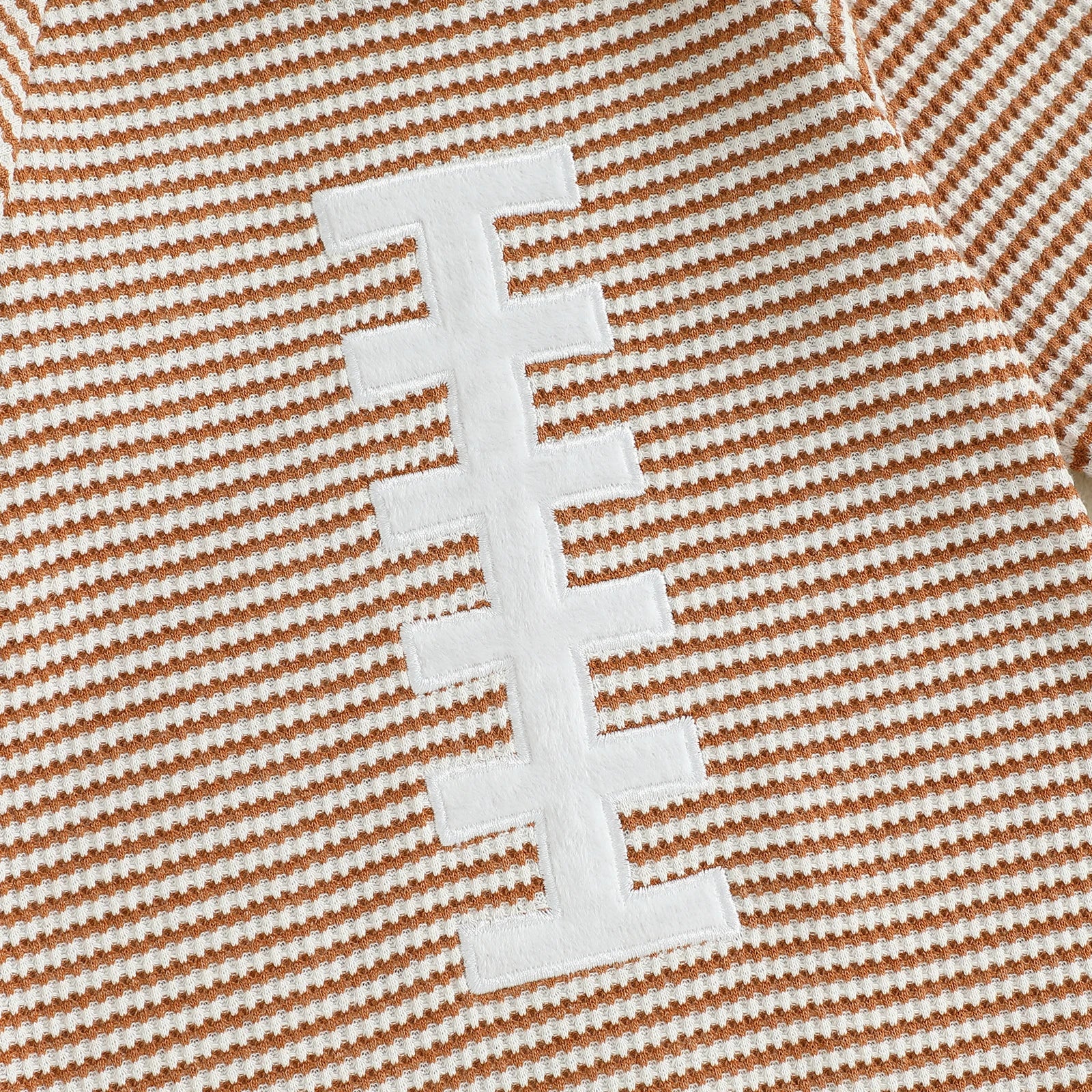 Get your little MVP game-day ready with this adorable Football-Inspired Baby Jumpsuit! Crafted from soft, breathable knit fabric, this cozy one-piece features classic brown and white stripes with a bold football stitch design front and center. The snap closures along the legs make diaper changes a breeze, while the ribbed cuffs ensure a snug, comfy fit. Perfect for playtime, nap time, or cheering on your favorite team — your baby will score major style points in this sporty outfit!