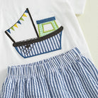 Set sail for sunshine-filled days! The Set Sail Shorts Set is designed for warm-weather adventures, backyard play, beach trips, and sweet summer photos. Featuring a soft white tee with an embroidered sailboat and breathable blue striped shorts, this set blends playful charm with everyday comfort.