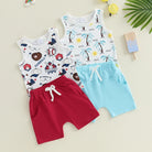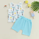 Ready, set, summer! Whether it's palm trees or home runs, your little one will be ready for warm-weather adventures in these playful tank and shorts sets. Choose from two fun styles: Tropical Vibes with palm tree and sunshine prints paired with soft aqua blue drawstring shorts or Baseball Champ with sporty gear illustrations and bold red shorts for a home-run look.
